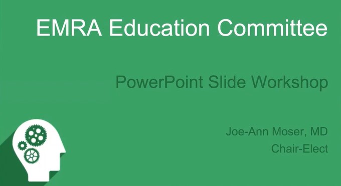 Watch EMRA's Education Committee's PowerPoint slideshow workshop to teach you "How to Deliver an Entertaining Conference Session".