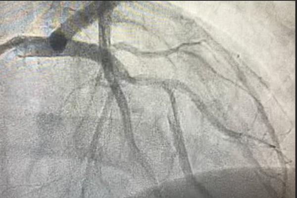 Given the concerning clinical picture, the patient was taken emergently for coronary angiography.