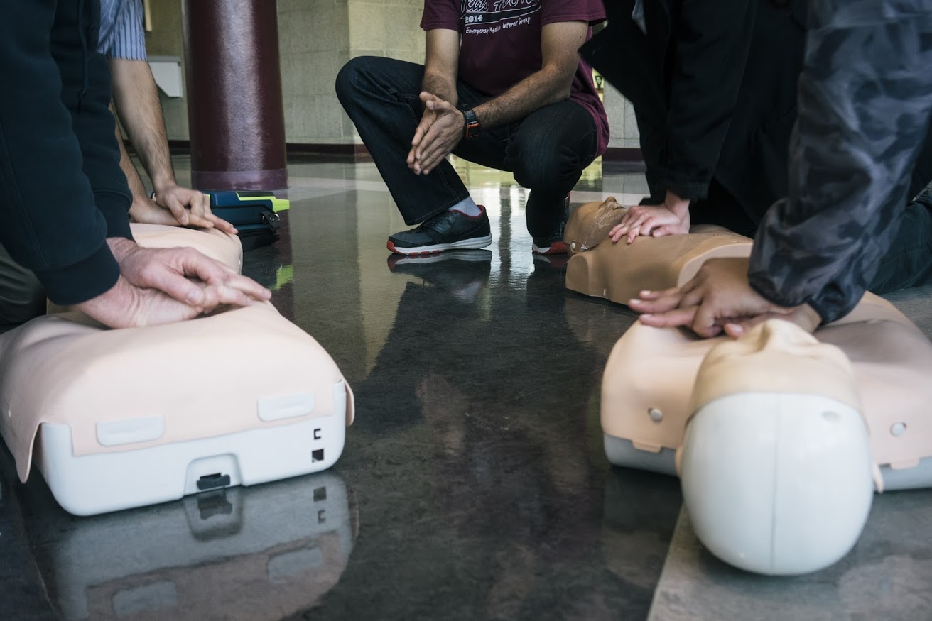 Mannequins, a space to practice, and helpful instruction were the keys to hands-only CPR training. (Photo by Jessica Nguyen)