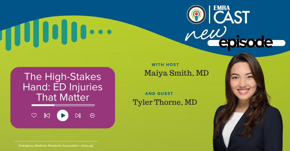 Hand injuries may look minor, but missed diagnoses can mean permanent disability. In this episode, EMRA*Cast host Maiya Smith, MD, is joined by PGY-3 Orthopedic Surgery resident Dr. Tyler Thorne to break down the high-yield hand exam and walk through can't-miss cases like Seymour fractures, central slip injuries, and perilunate dislocations.